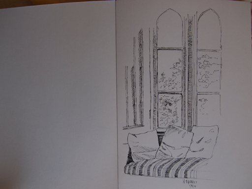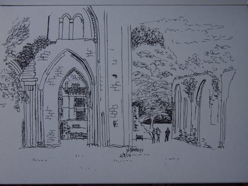 One of the common rooms at Abbey House above and below are two sketches I did - again with no preliminary pencil work. My two lovely subjects, Denise and Christine are much lovelier in the flesh than my unflattering scribbles show, but they were generous in their praise nonetheless!